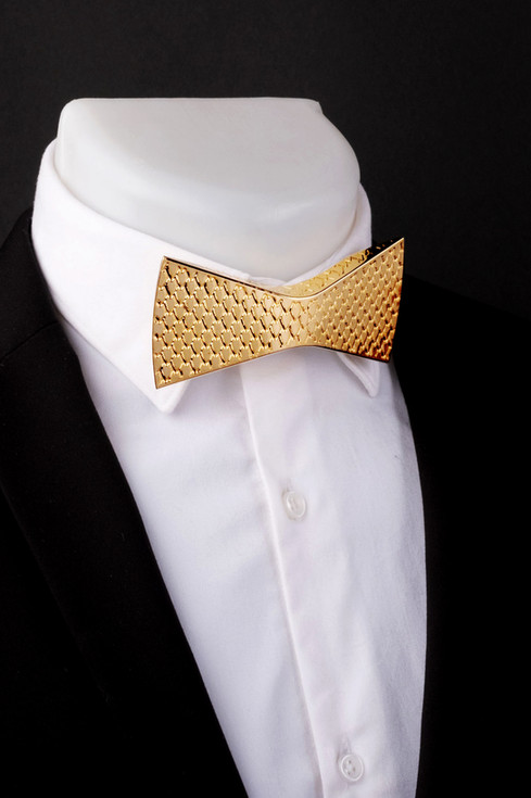 this iconic bow tie captures the essence of bold elegance. Sculpted from a flat sheet of metal and hand-folded into a three-dimensional form, it becomes a wearable sculpture, balancing power, precision, and craftsmanship.