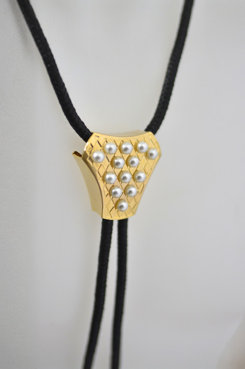PEARLRHOMBUS BOLO TIE | Handcrafted Gold Bolo Necklace with Pearls